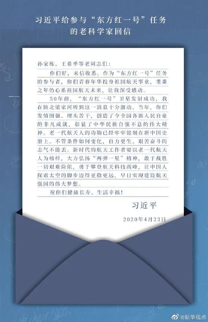 “敢于战胜一切艰难险阻”——今年4月,习近平给参与“东方红一号”任务的老科学家回信时这样写道。